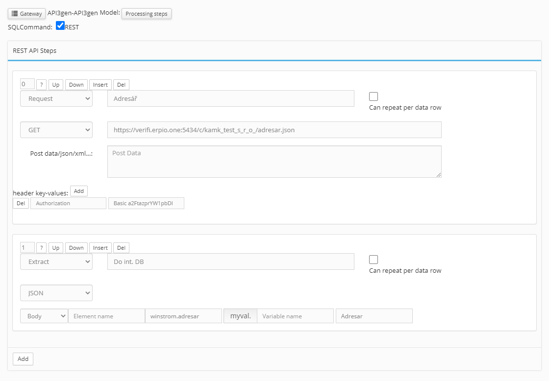 Příklady nastavení definice Zdroje (SQLCommand: REST):