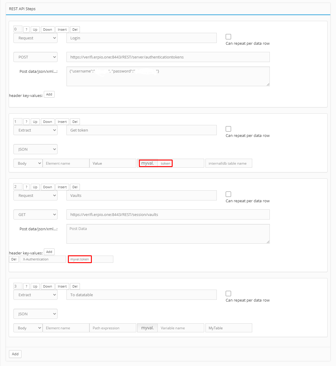 • 2. krok je typu Extract, kde se výsledný token uloží do proměnné „myval.token“