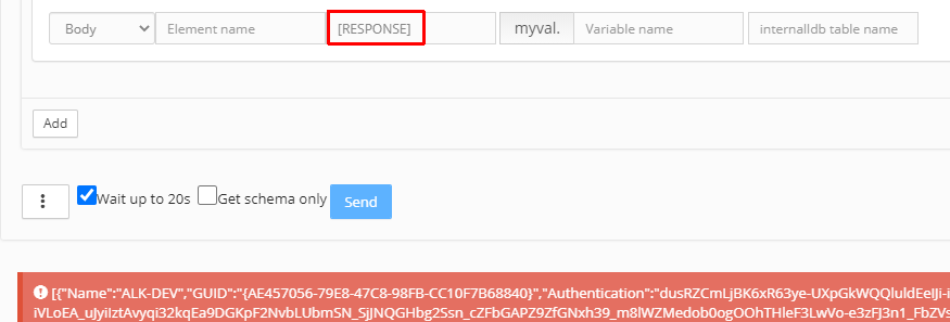 • Tabulky na 1 řádek se sloupcem „RESPONSE“, pokud je vyplněný název tab. <internalldb table name>