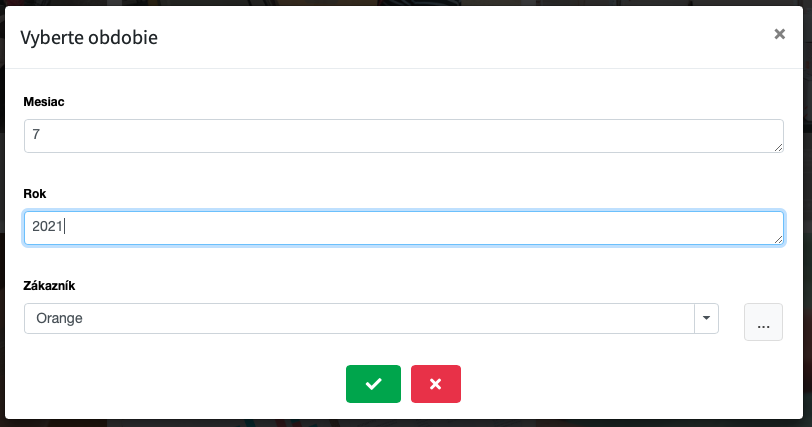 Po kliknuti je potrebne zadat mesiac a rok, za ktorý chcete zobrazit report.