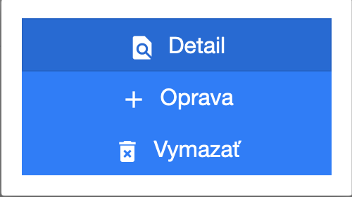 môžeme zákazníka Vymazať, Opraviť, alebo si pozrieť podrobnosti – Detail